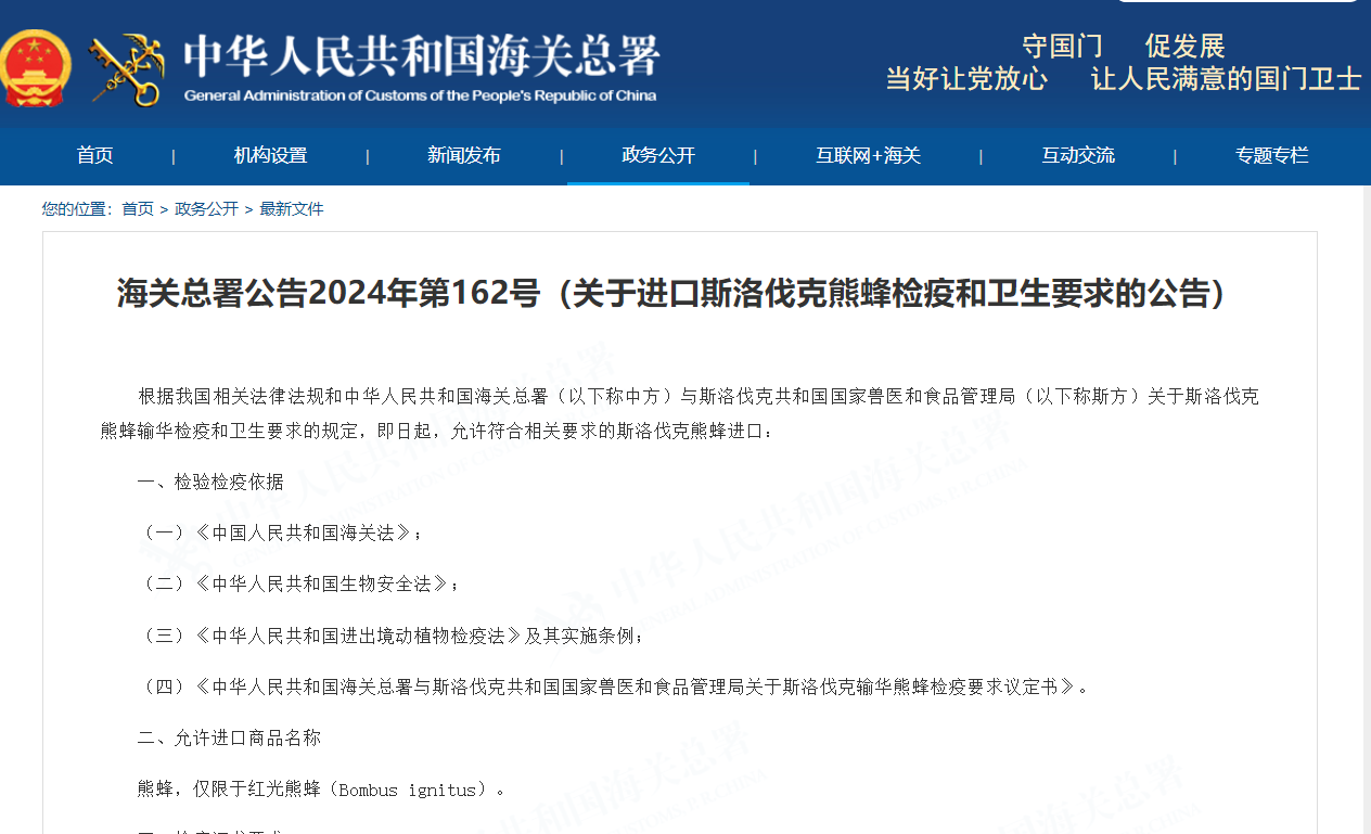 咨询:海关总署公告2024年第162号(关于进口斯洛伐克熊